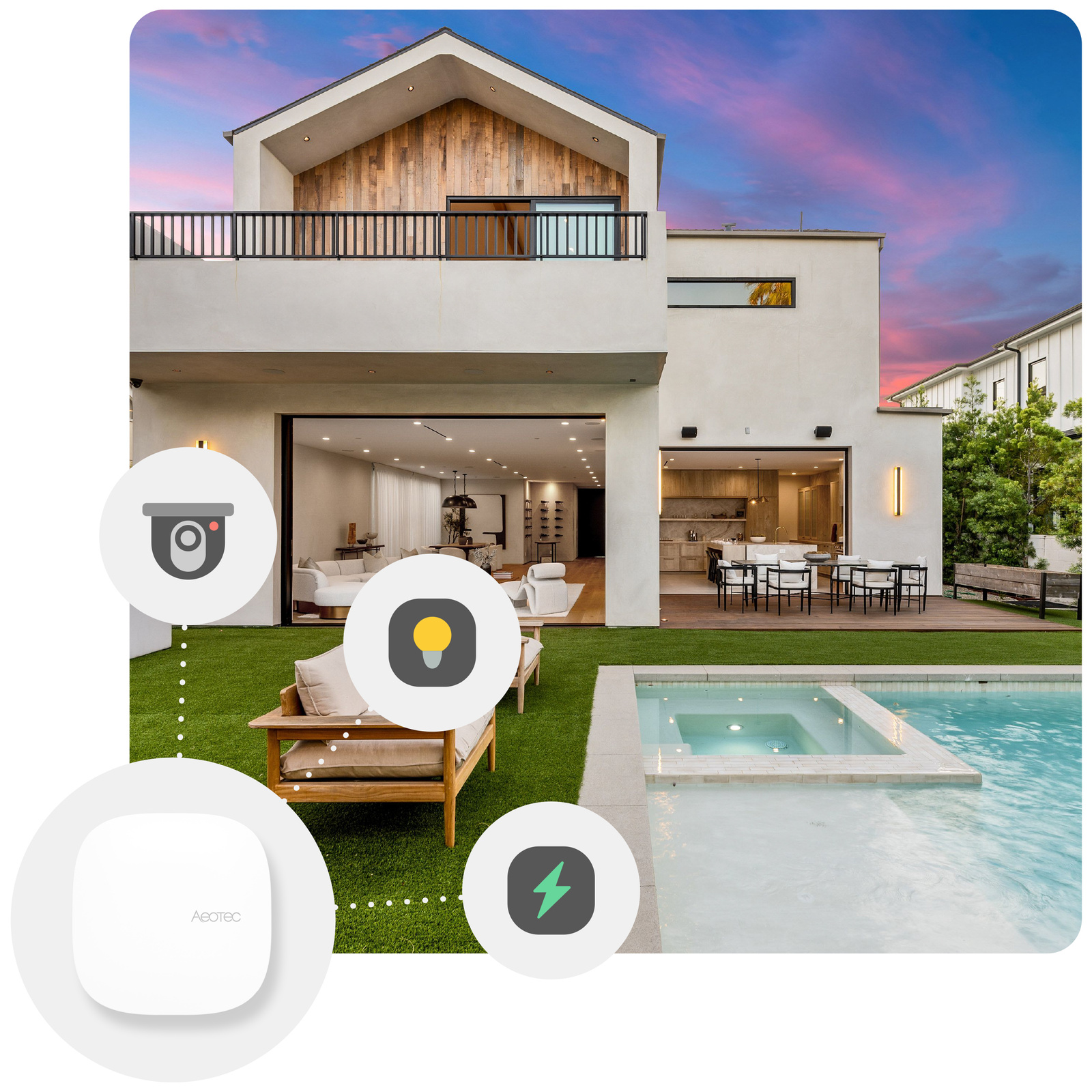 - Aeotec Smart Home Hub 2 obsługuje 300+ urządzeń Matter (180+ marek) i 150 urządzeń Zigbee z platformą SmartThings (200M użytkowników).