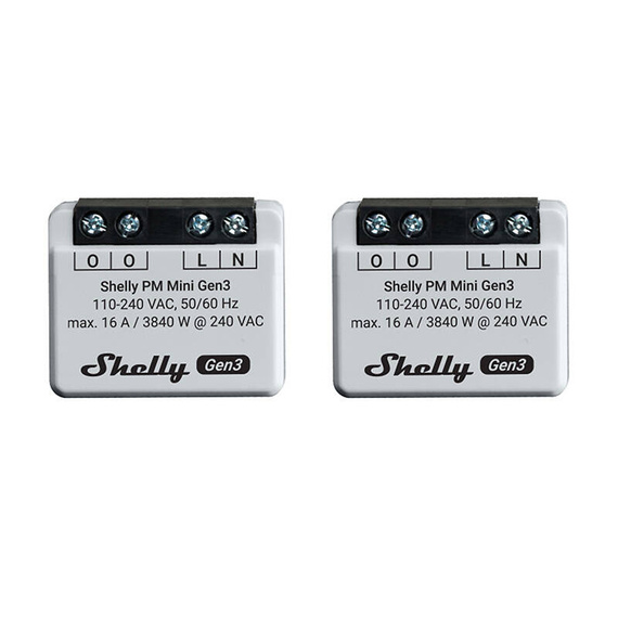 - Zestaw 2 sterowników Shelly PM Mini Gen3 to najbardziej kompaktowe mierniki energii 16A/240V z nowym procesorem i zwiększoną pamięcią flash.